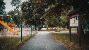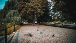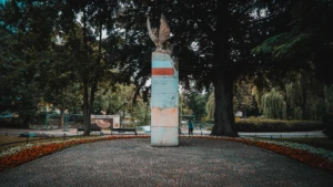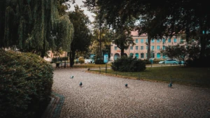 Spacerując dalej, trafiamy do zielonego zakątka – Parku im. Harcmistrza Huberta Bonina, założonego jeszcze w XIX wieku jako park miejski. To idealne miejsce na chwilę odpoczynku i kontakt z naturą, połączone z elementami pamięci o lokalnych bohaterach.