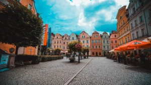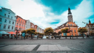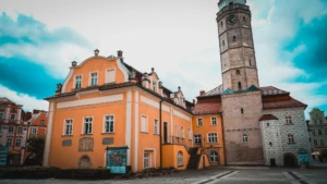 Naszą podróż rozpoczynamy na sercu miasta, czyli na Rynku w Bolesławcu. Ten centralny plac istniał już w średniowieczu, a jego obecny układ pochodzi z czasów odbudowy po zniszczeniach wojennych XVII wieku. Otaczające go kolorowe kamienice przywrócono do dawnej świetności w latach 60. XX wieku, a dziś mieszczą się tu kawiarnie, sklepy i galerie sztuki. To miejsce tętni życiem, tak jak przed wiekami, kiedy odbywały się tu jarmarki i targi.