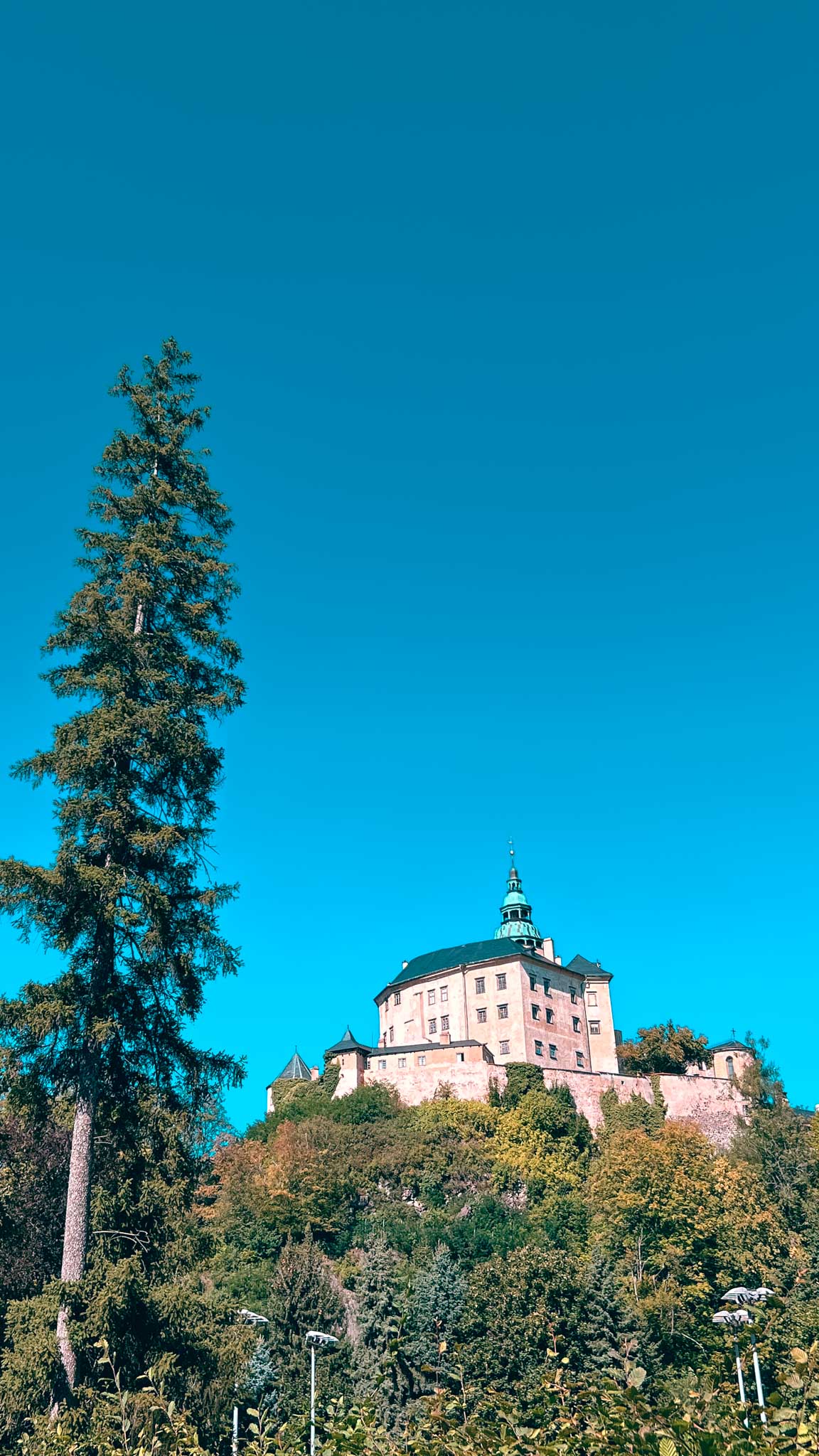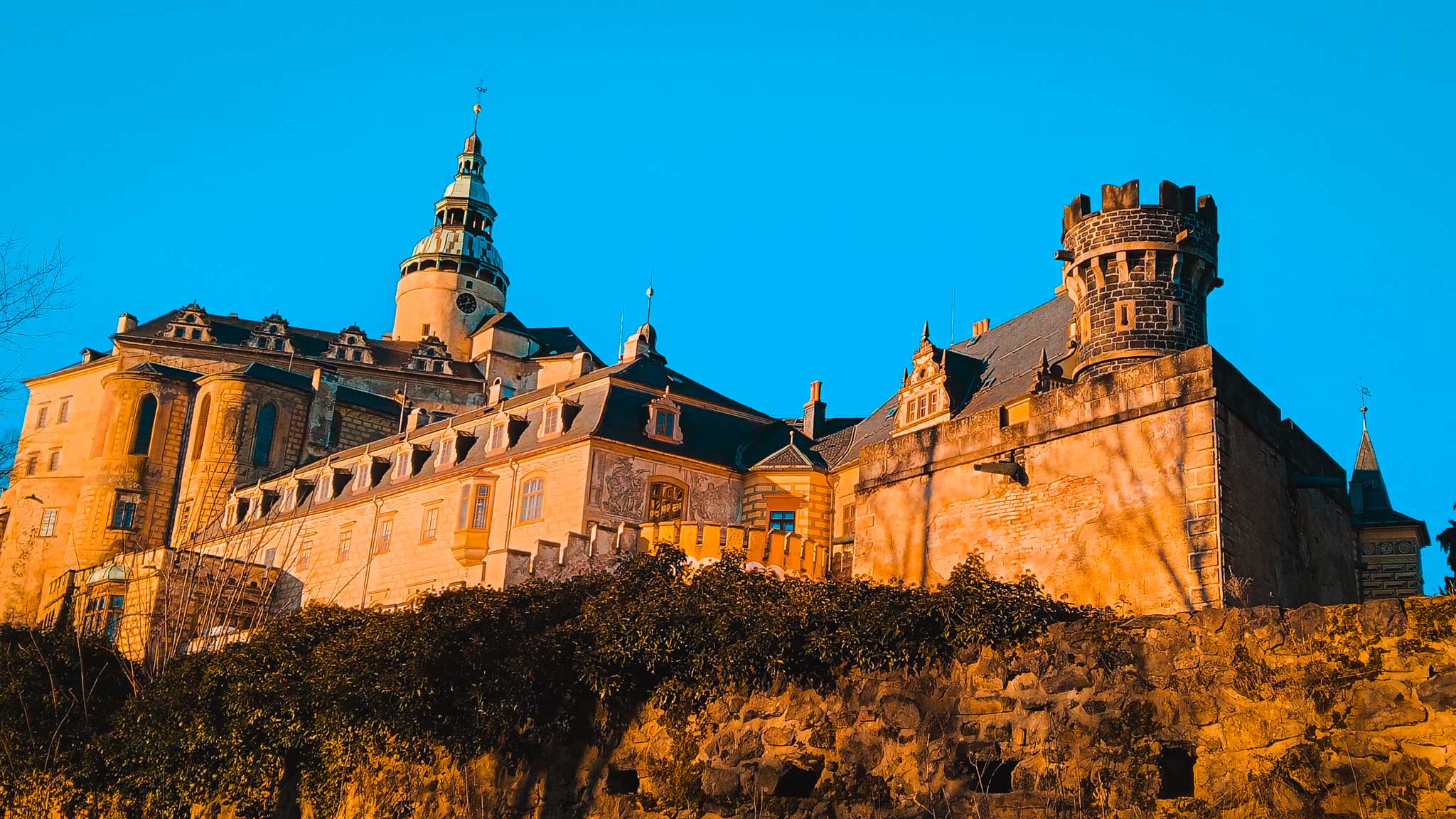 Na zakończenie trasa prowadzi do Frýdlantu, jednego z najpiękniejszych miast północnych Czech. Największą atrakcją jest tu potężny zamek i pałac Frýdlant, którego historia sięga XIII wieku. To jedna z pierwszych w Europie rezydencji udostępnionych turystom – już w XIX wieku można było zwiedzać tu wnętrza. Zamek łączy w sobie gotycką warownię, renesansowy pałac i barokowe dodatki, a jego wieża dominuje nad całą okolicą.