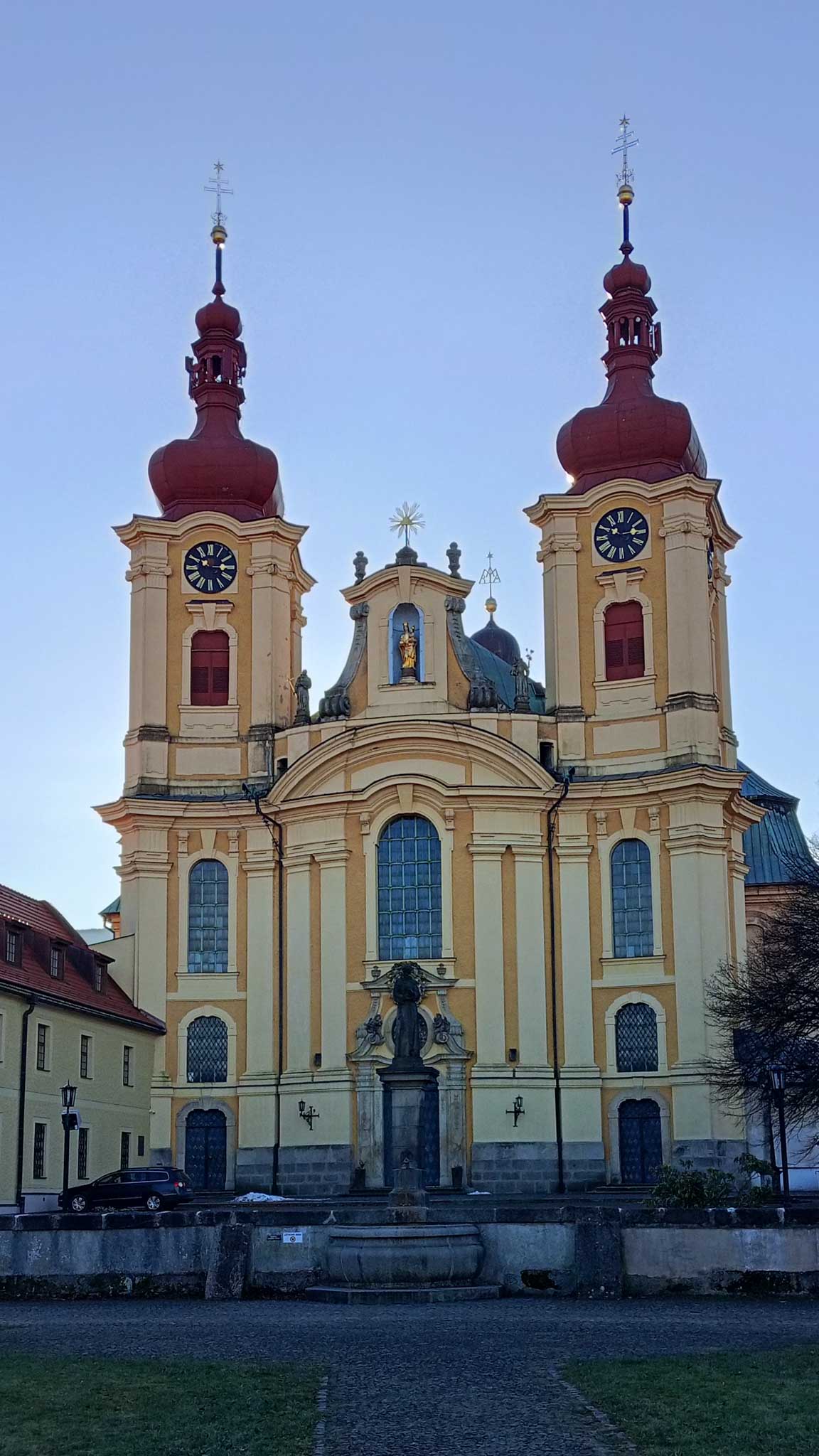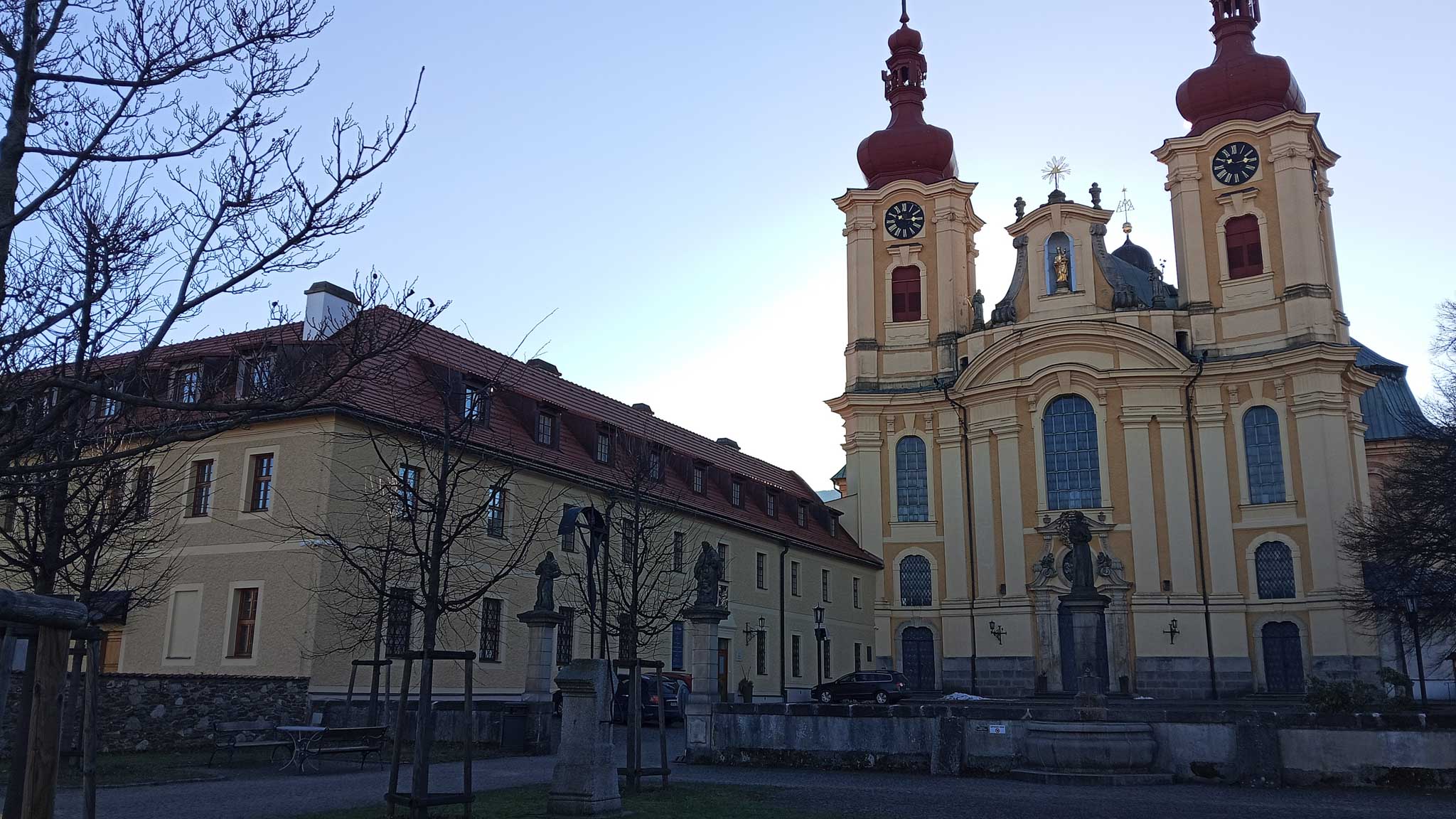 Naszą wyprawę zaczynamy w Hejnicach, niewielkim miasteczku u podnóża Gór Izerskich. To miejsce od wieków znane jest jako ośrodek pielgrzymkowy. Najważniejszym punktem jest monumentalny kościół Nawiedzenia Najświętszej Maryi Panny wraz z klasztorem franciszkanów. Świątynia powstała w XVII wieku na miejscu wcześniejszej kaplicy i szybko stała się jednym z najważniejszych miejsc kultu maryjnego w północnych Czechach. Barokowa bazylika zachwyca bogatym wnętrzem i spokojem, który odczuwa się już w jej murach.