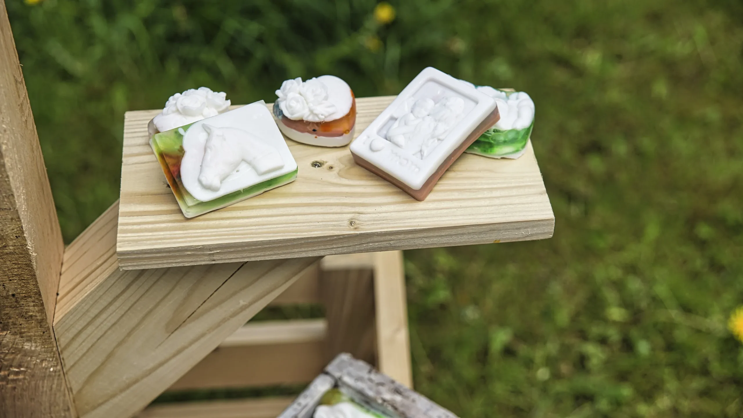 Der Weg zur Seifenherstellung begann mit einem einfachen Projekt, das den Kauf von Formen und Materialien umfasste. Mit der Zeit entwickelte sich daraus jedoch eine echte Leidenschaft, die die Künstlerin ganzjährig erfüllt – im Sommer wie im Winter. Die Seifen basieren auf Glycerinmasse, die als Grundlage dient. Sie werden mit natürlichen Farbstoffen hergestellt, was sie nicht nur ästhetisch ansprechend, sondern auch hautfreundlich macht. Die Formen reichen von Rosen, Engeln, Kätzchen und Hunden bis hin zu außergewöhnlicheren Motiven wie kleinen Autos. Diese Seifen sind das perfekte Geschenk – von kleinen Herzen über niedliche Gemüse- oder Obstformen bis hin zu größeren, eleganten Stücken für besondere Anlässe.