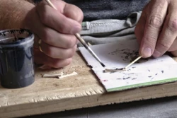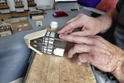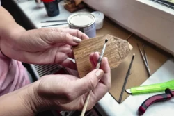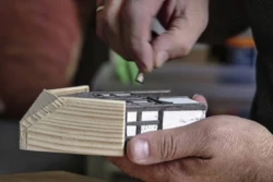 Inspiriert von dieser Entdeckung beschlossen Anton und seine Frau, Miniaturmodelle dieser charakteristischen Häuser anzufertigen. Sie fertigten einige kleine Holzhäuschen und Wandhaken an, die schnell bei den Bewohnern der Region Anklang fanden. Nach und nach begannen sie mit einer größeren Produktion – ihre Leidenschaft entwickelte sich zu einem kleinen Familienunternehmen. Jedes dieser Häuschen ist ein echtes handwerkliches Kunstwerk, das Präzision und große Sorgfalt erfordert. Für die Herstellung eines Hauses benötigen sie drei bis vier Tage. Der Arbeitsprozess beginnt mit dem Zuschneiden kleiner Einzelteile, anschließend werden diese geschliffen, bemalt und zusammengesetzt. Jeder Arbeitsschritt – vom ersten Entwurf über die Bemalung bis hin zur finalen Montage – erfordert Geduld und Engagement.