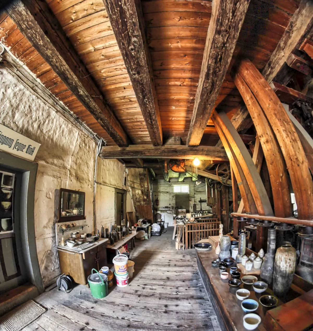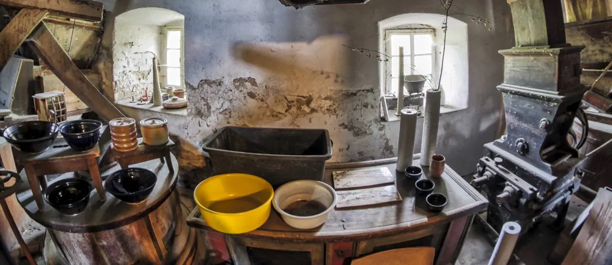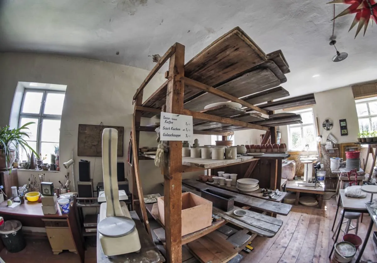 W malowniczej miejscowości Wittgendorf znajduje się stary młyn, znany jako Młyn Meinelów. To miejsce od pokoleń kojarzone było z młynarstwem – przez lata rodzina Meinelów żyła tutaj i trudniła się mieleniem zboża. Dziś, choć wciąż obecny jest duch tradycji, młyn zyskał nową funkcję. Już nie słychać szumu ziaren i skrzypienia starych mechanizmów. Ich miejsce zajęło stukanie dłoni, kręcenie koła garncarskiego i cichy trzask ognia w piecu opalanym drewnem. To tutaj Hendrik Schöne tworzy wyjątkową ceramikę, przywracając do życia jedną z najstarszych technik wypału naczyń.