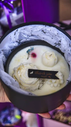 Cały proces tworzenia świec to dla Izy prawdziwa pasja, która wymaga precyzyjnego planowania i dokładności. Każdy szczegół jest starannie zaprojektowany – od wyboru zapachu, przez odpowiedni dobór elementów dekoracyjnych, po ułożenie detali na świecy. Iza zaczyna od tworzenia małych form, takich jak kwiatuszki, serduszka czy listki, które następnie dodaje do świec, tworząc unikalne kompozycje, które cieszą oko i wprowadzają do domu wyjątkowy zapach.