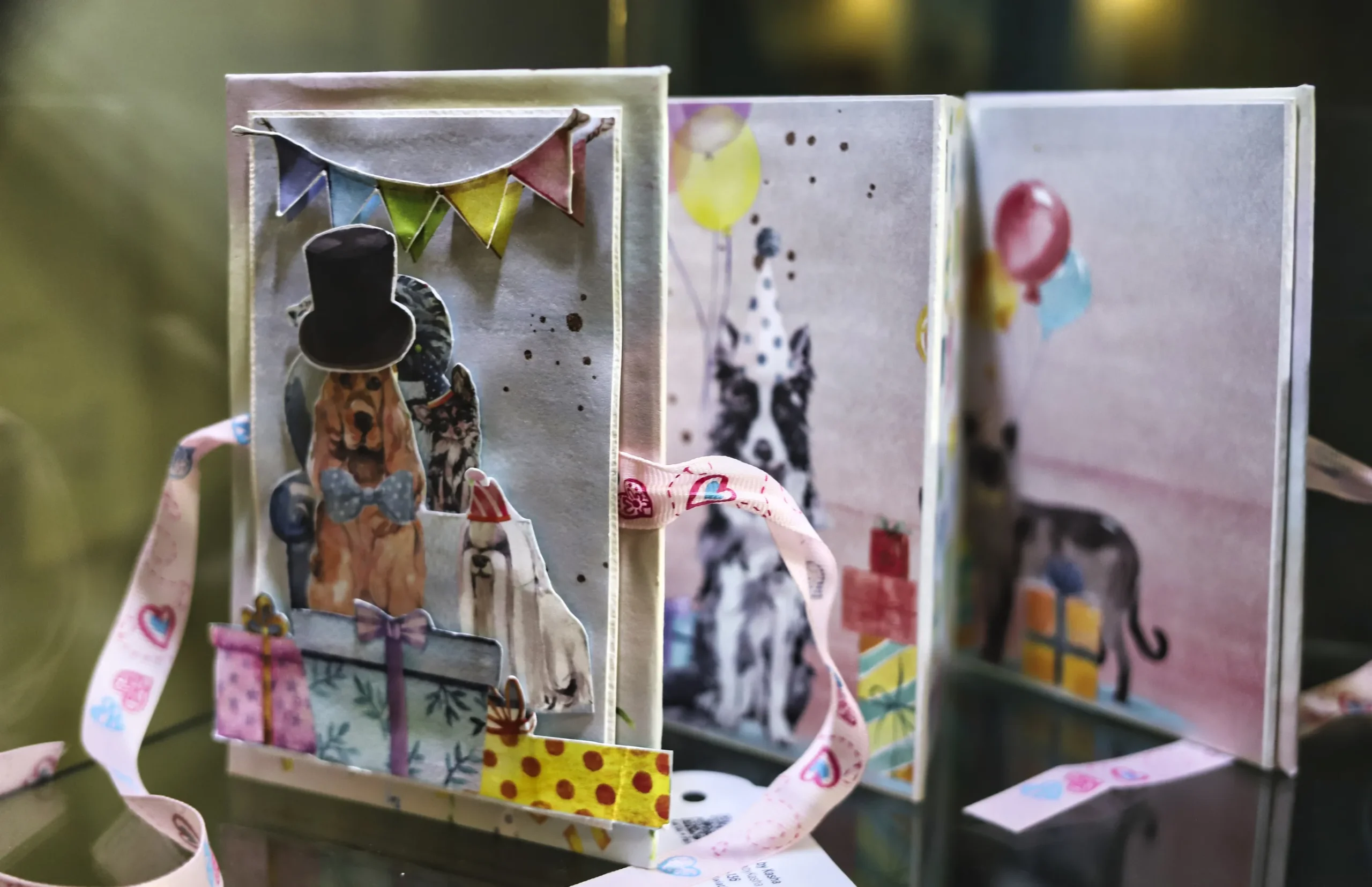 Was einst mit Lineal, Bleistift und Radiergummi begann, entwickelte sich mit der Zeit weiter: Katarzyna investierte in professionelle Werkzeuge, die ihre Arbeiten präziser und die Handhabung komfortabler machten. Ein Beispiel ist die Papierschneidemaschine, mit der sie millimetergenaue Schnitte erzielt. Ihre Karten entstehen mittlerweile systematisch – Schicht für Schicht konstruiert sie Kompositionen aus sorgfältig abgestimmten Papierelementen. Im Laufe der Jahre hat sie eine eigene Methode entwickelt, die es ihr ermöglicht, schnell und effizient besondere Grußkarten zu gestalten.