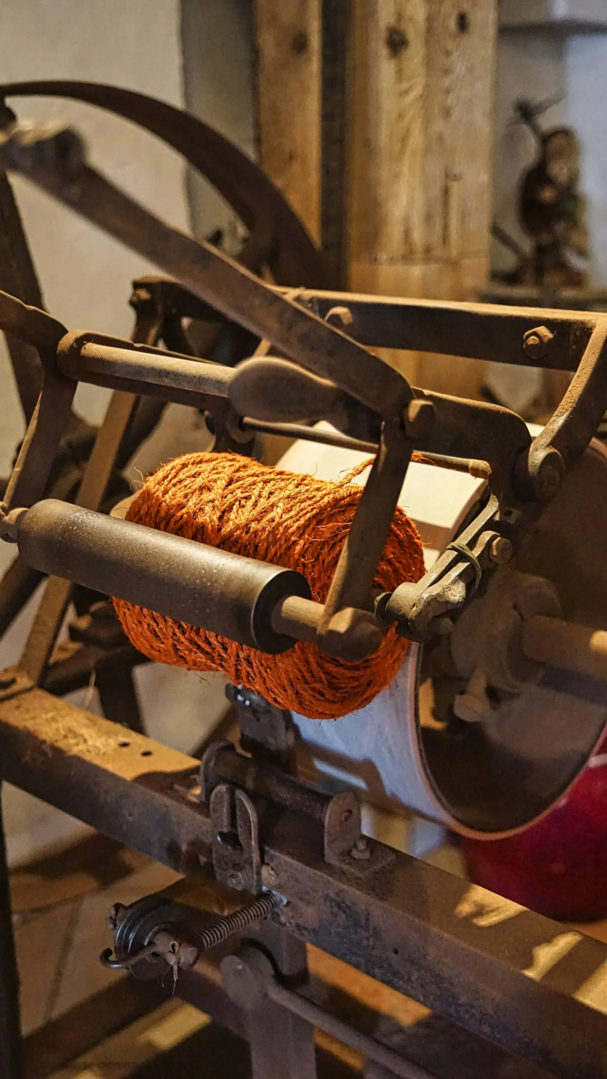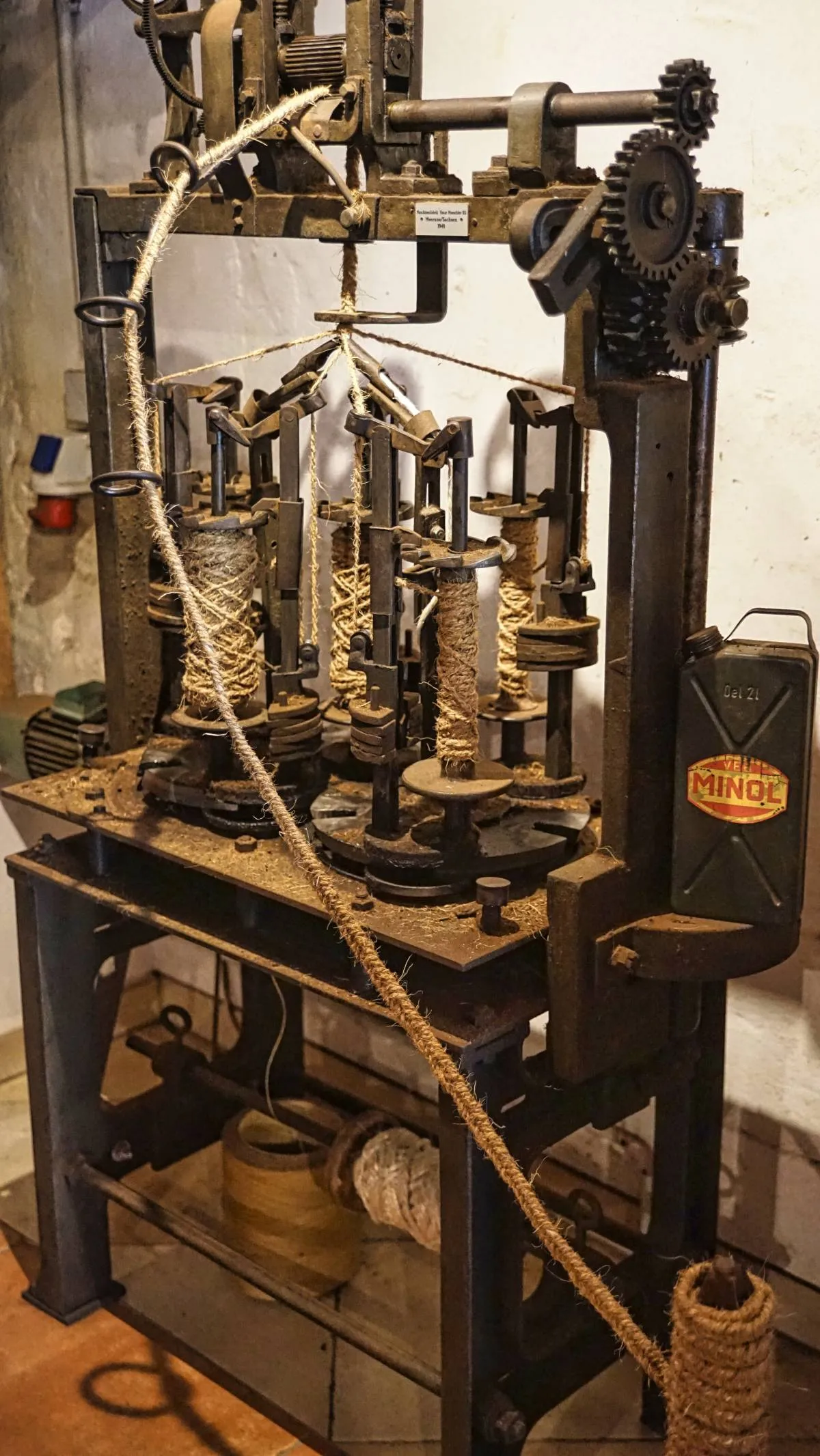 Ein zentrales Element der Herstellung sind traditionelle, teilweise historische Maschinen, wie z. B. Flechtmaschinen für Kokosfaser oder Spulmaschinen, die bis heute unverzichtbar sind. Moderne Technologien sind mit den zähen, groben Fasern der Kokospalme schlicht überfordert. Diese spezialisierten Maschinen – oft seit Jahrzehnten im Einsatz – bilden die Grundlage für einen authentischen Fertigungsprozess. Sie ermöglichen die Herstellung robuster, langlebiger Produkte und bewahren zugleich den ursprünglichen Charakter des Handwerks. Jeder gefertigte Artikel ist Ausdruck jahrzehntelanger Erfahrung und echter Leidenschaft.