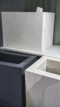 Die Pflanzkübel werden ausschließlich auf Bestellung gefertigt – das ermöglicht individuelle Maße und Anpassungen. Die Größen reichen von kleineren Modellen mit 35 x 50 cm bis hin zu großen Varianten mit 120 x 60 cm, sowie 70 cm hohen Ausführungen, die sich ideal für Gärten und Terrassen eignen. Die Oberfläche wird mit Reibeputz, Strukturputz oder Spachtelmasse veredelt und in eleganten Grau- oder Anthrazittönen lackiert. Da jeder Kübel individuell gefertigt wird, ist jedes Stück ein Unikat und kann vollständig personalisiert werden.