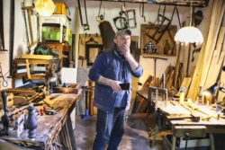 Ein besonders herausragendes Projekt, an dem er derzeit arbeitet, ist ein kleines Umgebindehaus, das im Park von Wolimierz aufgestellt wird. Es ist ein zeitaufwändiges Vorhaben, das bald Teil der dortigen Bibliothek werden soll. Dieses Projekt liegt ihm besonders am Herzen, da es traditionelle Bauweise mit moderner Nutzung im öffentlichen Raum vereint. Ebenso spannend ist ein Auftrag für den Agrotourismusbetrieb „Róża i Mięta“, für den Tomasz ein spezielles Eierbrett entworfen hat – ein perfektes Beispiel für sein handwerkliches