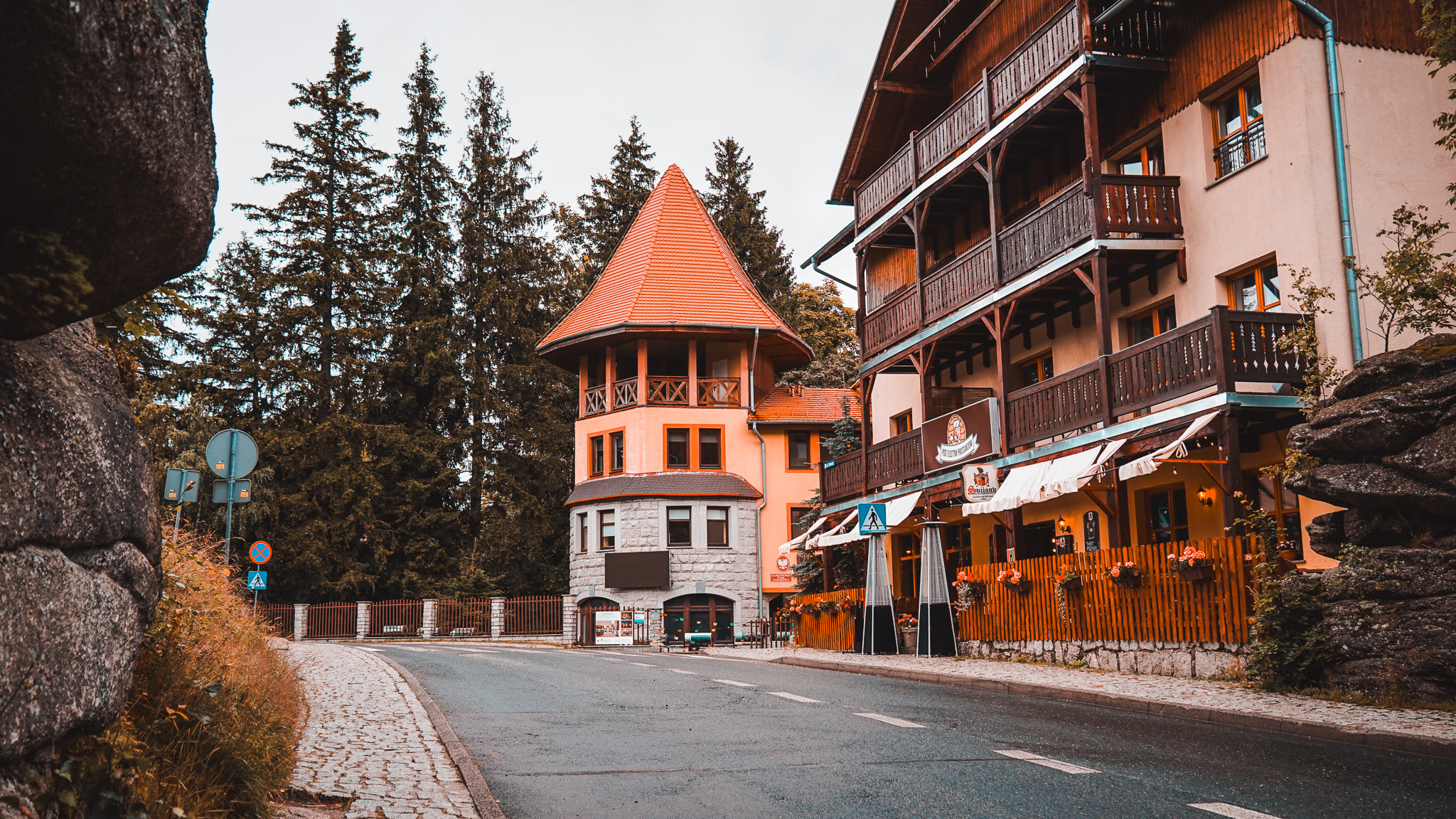 Naši cestu začínáme přímo v centru Szklarske Poręby, v Karkonoszkém centru ekologické edukace. Toto místo vzniklo jako pobočka Karkonoského národního parku a dnes slouží jako moderní výstavní síň i centrum poznání o horách. Multimediální expozice ukazují, jak se Karkonosze formovaly miliony let, jaké druhy rostlin a živočichů tu žijí a jakou roli sehrál člověk v dějinách tohoto regionu. Hned na začátku trasy tak pochopíme, v jak výjimečné krajině se nacházíme.