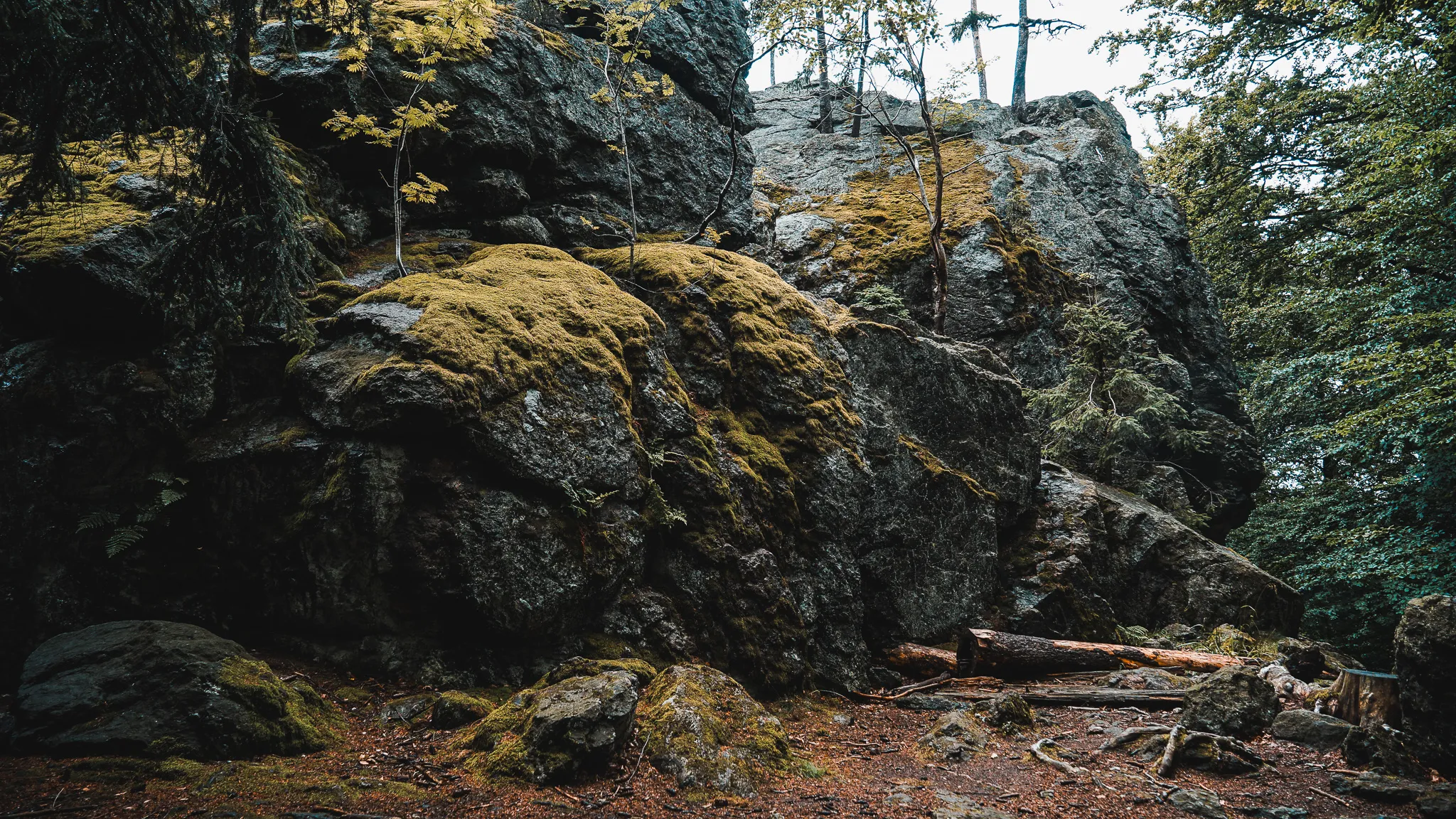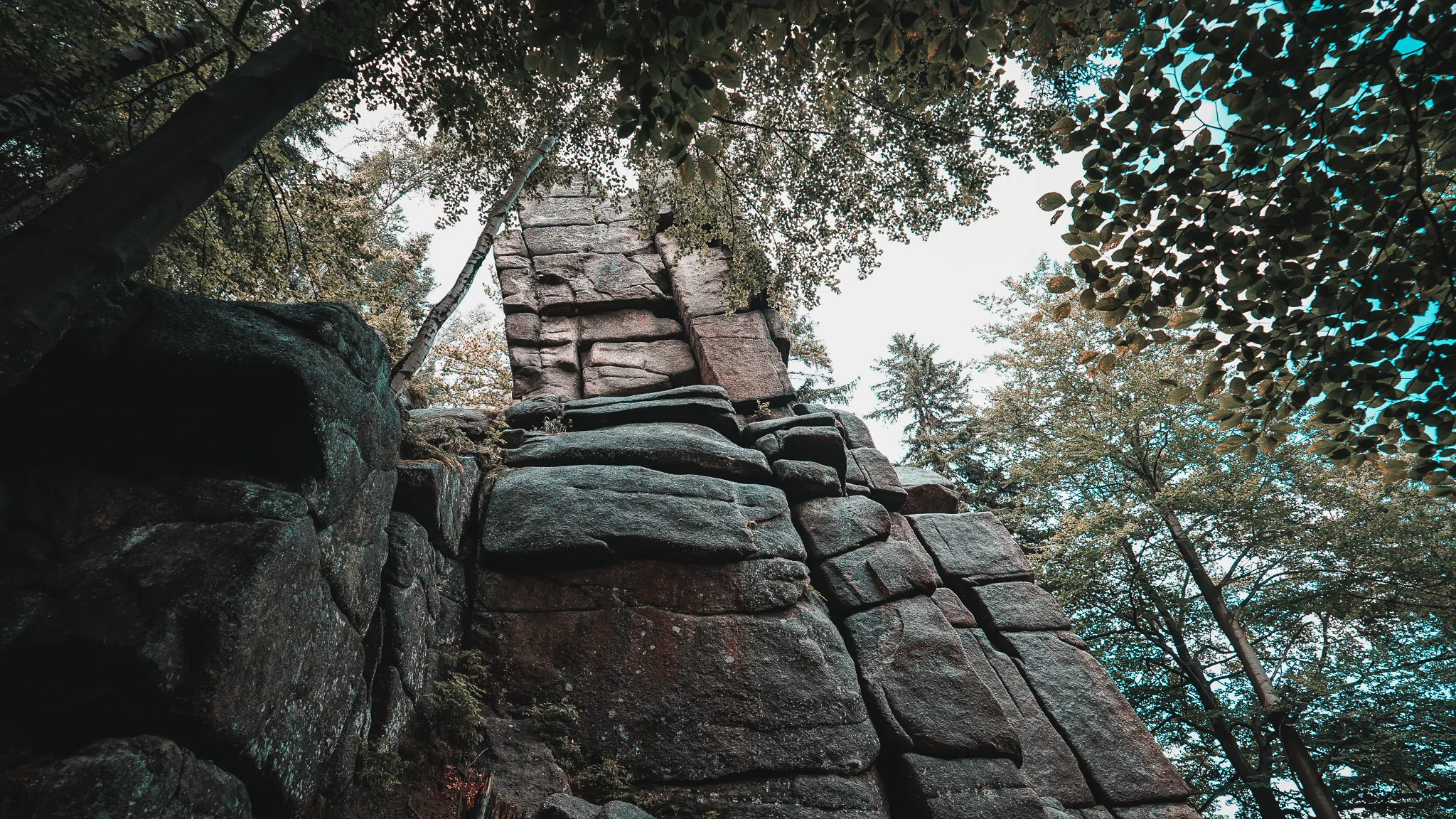 Szlak prowadzi następnie ku Zbójeckim Skałom – grupie granitowych formacji, które natura ukształtowała przez miliony lat. Nazwa pochodzi od legend o zbójnikach, którzy mieli tu ukrywać się przed strażnikami i napadać na kupców zmierzających przez górskie przełęcze. Dziś to malowniczy punkt widokowy z panoramą na doliny i szczyty.