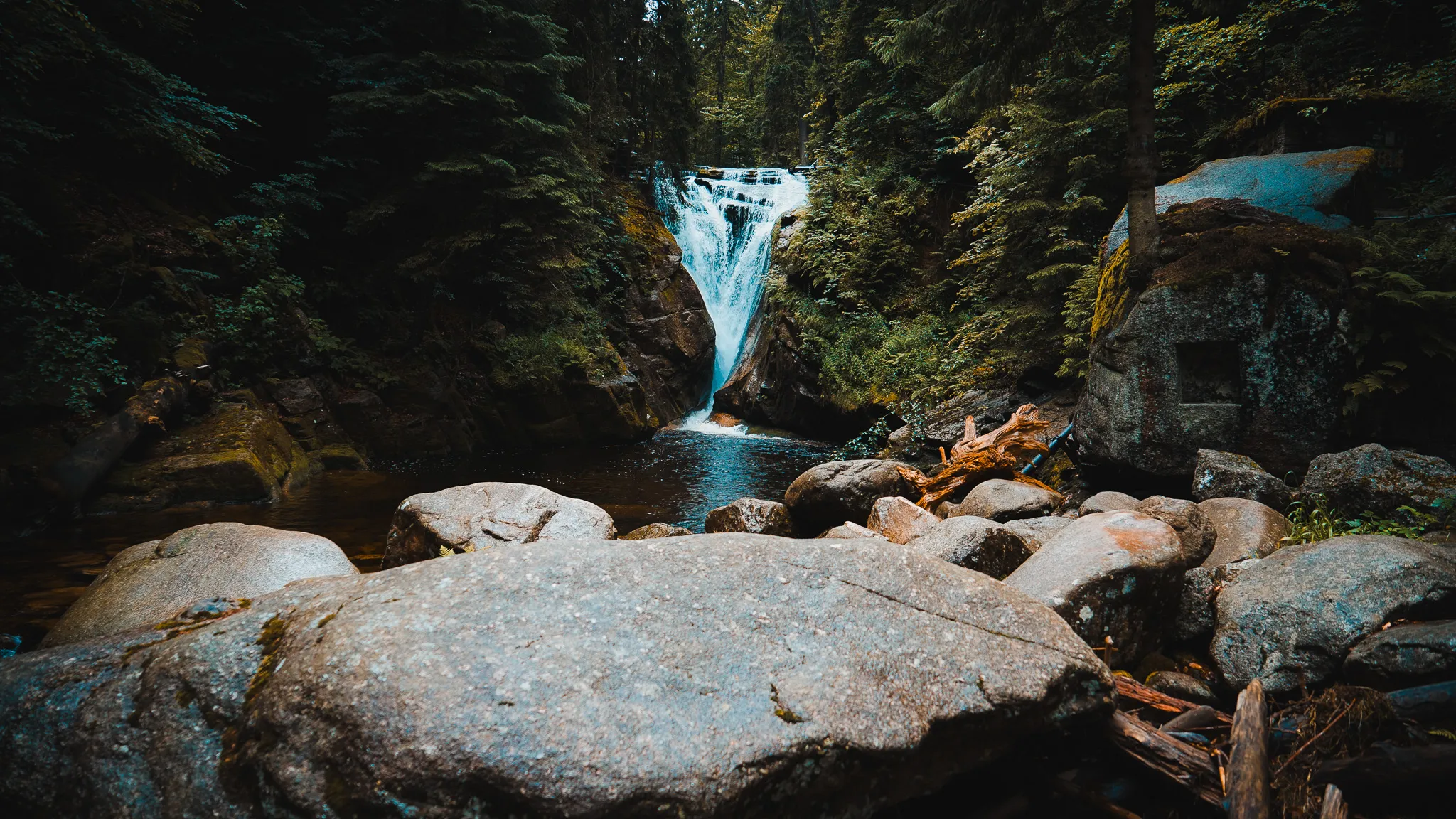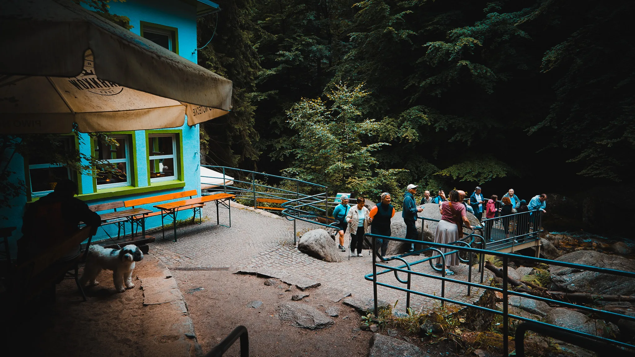 Po pár minutách chůze dorazíme k jednomu z nejmalebnějších zákoutí Karkonoszy – k Vodopádu Szklarki. Jeho 13metrová kaskáda stéká po spirálovitě stočené skále a vytváří podívanou, která okouzluje cestovatele už po staletí. První popisy vodopádu pocházejí z 18. století a v 19. století vedle něj vznikl zájezdní hostinec pro poutníky. Ten se časem proměnil v chatu Kochanówka, která funguje dodnes a uchovává atmosféru staré horské chalupy. Mnohé generace turistů si tu odpočinuly u čaje, naslouchajíce hřmění padající vody.