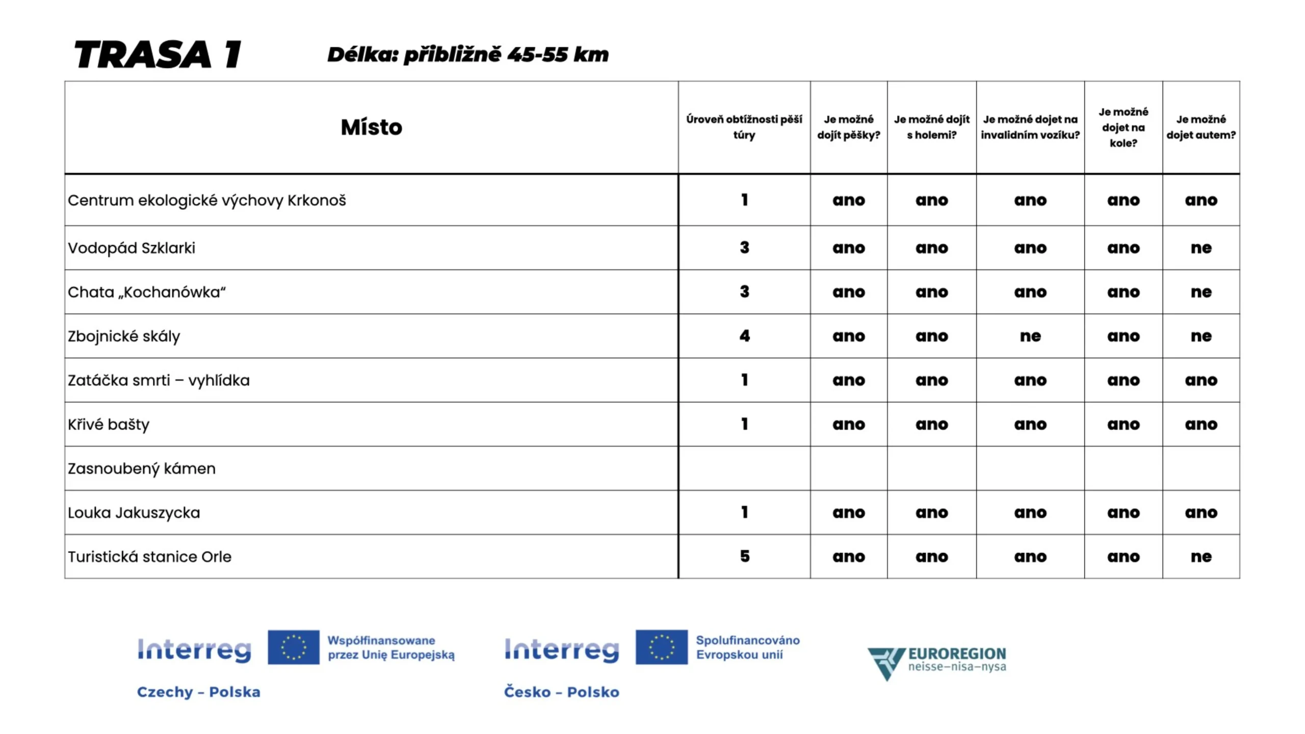 🌲 Trasa 1 je setkáním s přírodou, legendami a dějinami. Od malebných vodopádů, přes dramatické zatáčky horských silnic, až po stopy sklářství – každý krok vypráví jiný příběh. Je to cesta, která dovolí zároveň si odpočinout, kochat se scenériemi a objevit bohatství kultury Sudet.