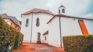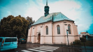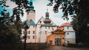 Początek tej trasy to Jablonné v Podještědí, niewielkie miasteczko z piękną starówką, którego największą dumą jest bazylika św. Wawrzyńca i św. Zdzisławy. To monumentalna świątynia barokowa, wzniesiona w XVIII wieku według projektu słynnego architekta Johanna Lucasa von Hildebrandta. Spoczywa tu św. Zdzisława z Lemberka – patronka całych Czech, znana ze swojej dobroczynności. Bazylika od wieków jest miejscem pielgrzymek, a jej bogato zdobione wnętrza robią ogromne wrażenie.