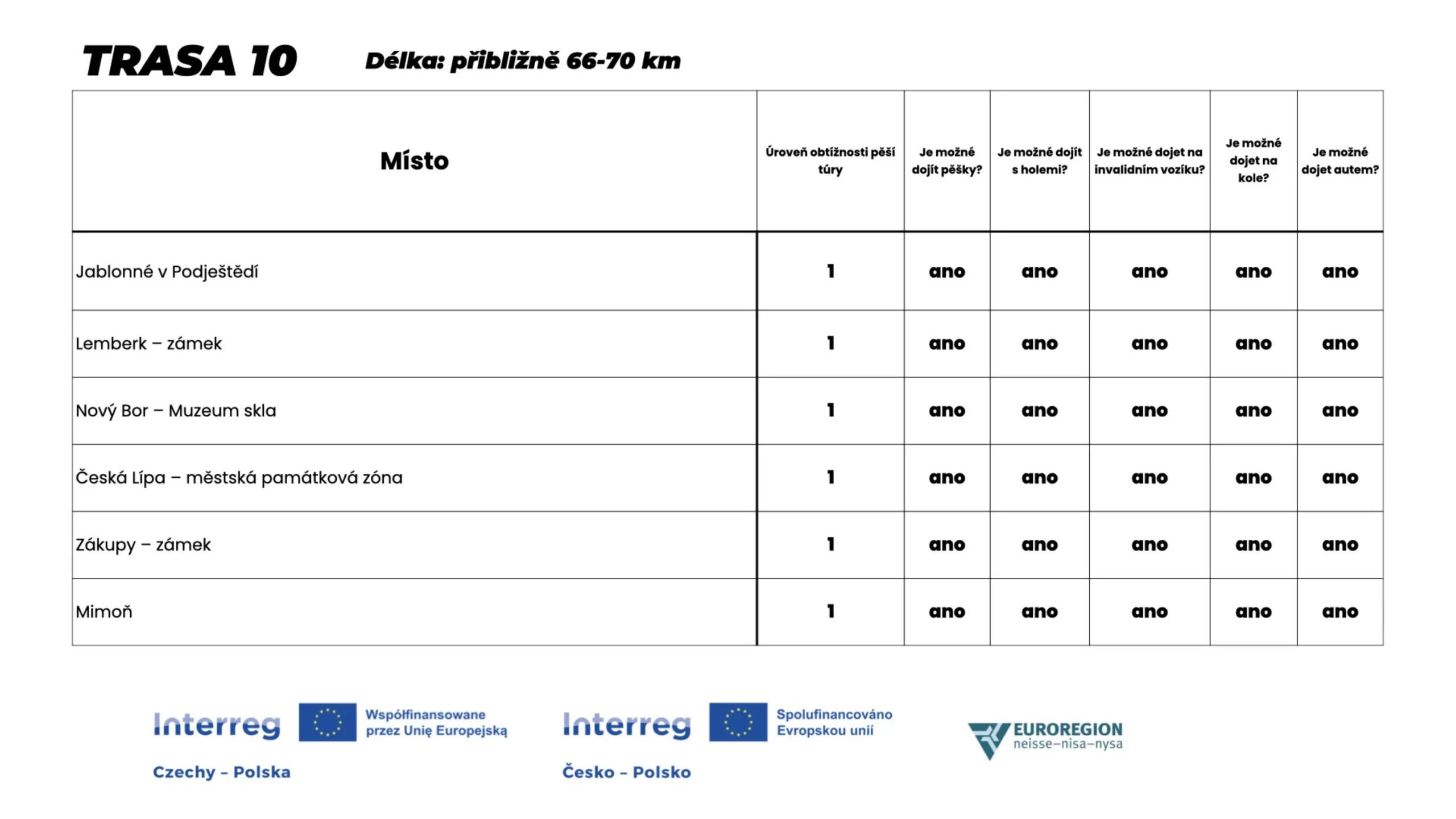 Náročnost trasy: 3/10 – snadná, většina bodů je dostupná autem a pěší úseky se omezují na procházky po centrech měst a zámcích.