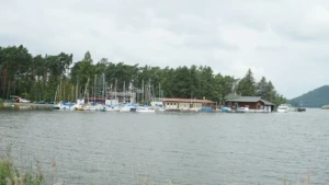 Następnie docieramy do Doksów, położonych nad malowniczym Jezioro Mechowym (Mechové jezírko). To niewielkie, torfowiskowe jezioro o charakterze rezerwatu przyrody, otoczone gęstymi lasami. Woda ma ciemny, niemal czarny kolor, co nadaje temu miejscu wyjątkowy, tajemniczy urok.