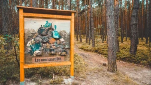 Ta trasa ma wyjątkowy charakter, bo prowadzi przez obszary dawnego poligonu wojskowego, które dziś stały się miejscem przyrody i rekreacji. Rozpoczynamy od rezerwatu Židlov, gdzie żyje stado żubrów sprowadzonych tu w latach 90. XX wieku. Spotkanie z tymi majestatycznymi zwierzętami, które powróciły do czeskich lasów po wielu wiekach nieobecności, to niezapomniane przeżycie.