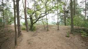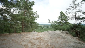 Na závěr stoupáme k ruinám hradu Ralsko, které se tyčí nad celým okolím. Pevnost vznikla už ve 13. století a dnes jsou její zříceniny oblíbeným cílem výletů. Výstup na vrchol je odměněn nádhernými výhledy na lesy, jezera a kopce – nejlepší tečka za celou trasou.