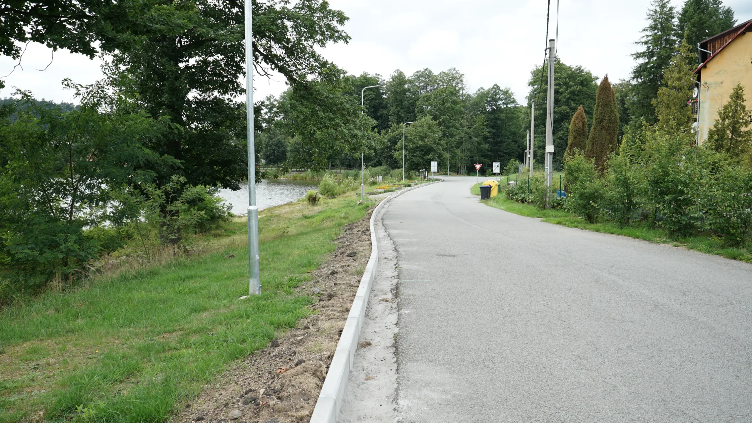 Trasa prowadzi dalej do Hradčan, dawnej osady położonej na skraju lasów Ralska. Zachowały się tu zabytkowe domy i kościół, a okolica sprzyja spokojnym spacerom wśród zieleni.