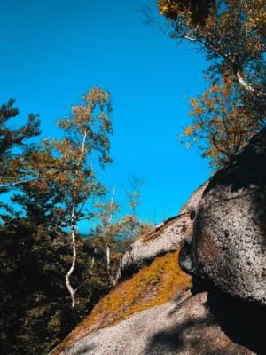 Następny etap to Oldřichovské sedlo, przełęcz i popularny punkt wyjściowy na szlaki turystyczne. Okoliczne skały i formacje granitowe stanowią atrakcję samą w sobie. To dobre miejsce na odpoczynek i spojrzenie na panoramę Gór Izerskich.
