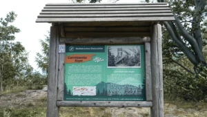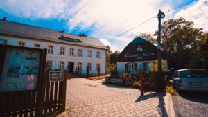 Na trasie warto też wspomnieć o miejscu zwanym Czarcim Młynem. Nazwa brzmi tajemniczo, a z tym punktem związane są lokalne legendy. Dawniej działał tu młyn wodny, a jego historia sięga co najmniej XIX wieku. Mówi się, że młynarz zawarł pakt z diabłem, aby jego młyn zawsze miał wodę i zboże – dlatego do dziś miejsce to budzi ciekawość turystów i jest chętnie odwiedzane.