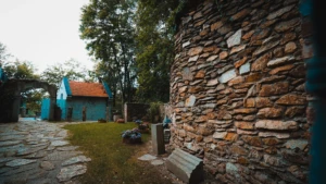 Naszą wyprawę rozpoczynamy przy tajemniczym Zamku Rajsko, położonym na skalnym cyplu nad Jeziorem Leśniańskim. Choć wygląda jak średniowieczna warownia, w rzeczywistości powstał stosunkowo późno – w latach 1875–1878. Była to budowla wzniesiona w romantycznym stylu, przypominająca sztuczne ruiny, modne w XIX wieku. Zamek miał przyciągać uwagę swoją malowniczością i tworzyć atmosferę dawnej fortecy. Po wojnie obiekt popadł w ruinę, a dziś stopniowo odzyskuje dawny urok. Z jego tarasów można podziwiać piękne widoki na jezioro i dolinę Kwisy.