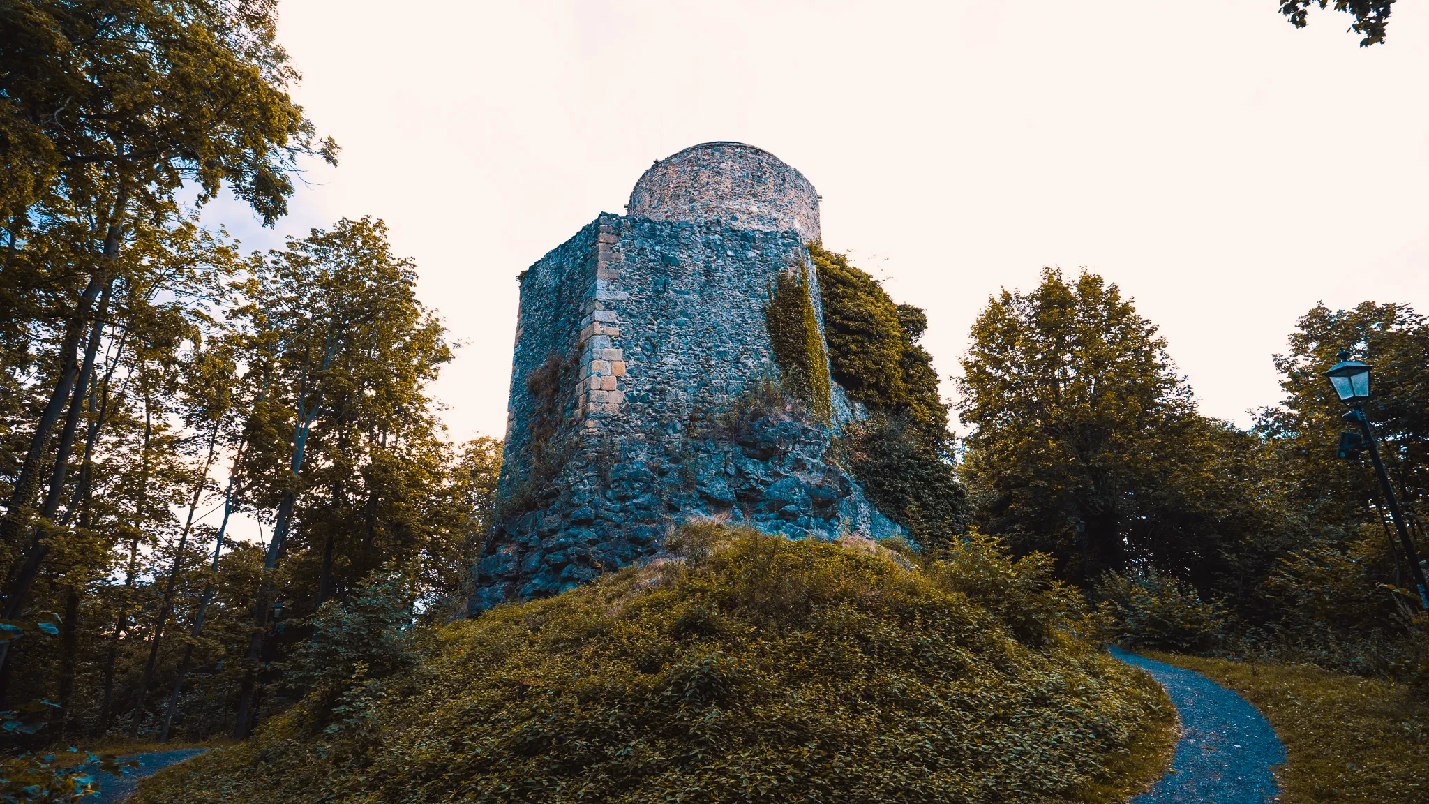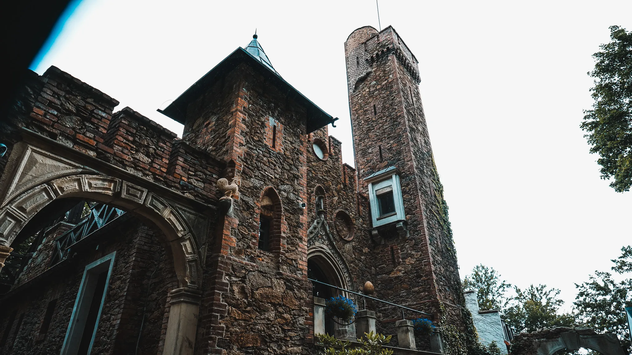 Naszą wyprawę rozpoczynamy przy tajemniczym Zamku Rajsko, położonym na skalnym cyplu nad Jeziorem Leśniańskim. Choć wygląda jak średniowieczna warownia, w rzeczywistości powstał stosunkowo późno – w latach 1875–1878. Była to budowla wzniesiona w romantycznym stylu, przypominająca sztuczne ruiny, modne w XIX wieku. Zamek miał przyciągać uwagę swoją malowniczością i tworzyć atmosferę dawnej fortecy. Po wojnie obiekt popadł w ruinę, a dziś stopniowo odzyskuje dawny urok. Z jego tarasów można podziwiać piękne widoki na jezioro i dolinę Kwisy.