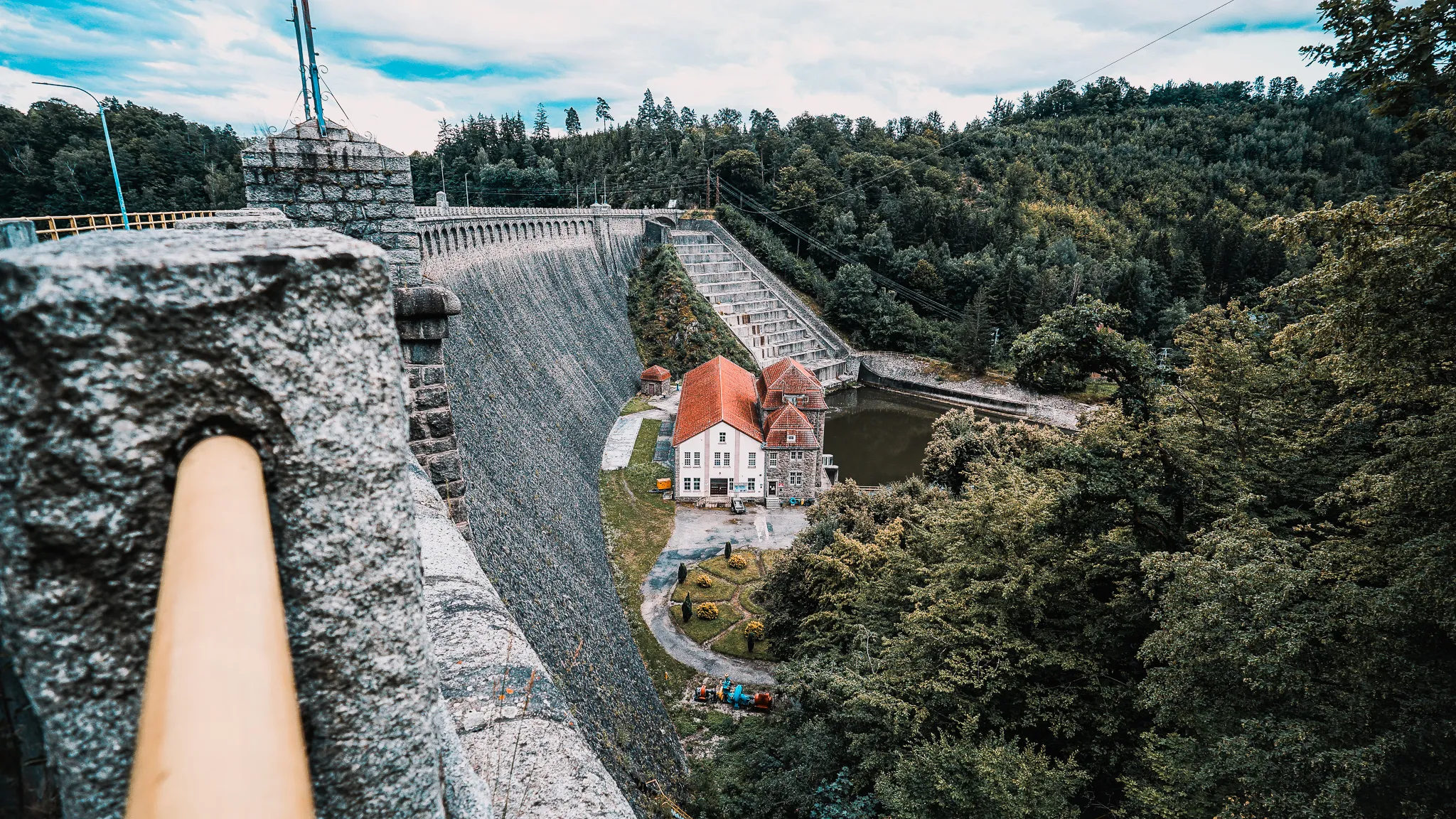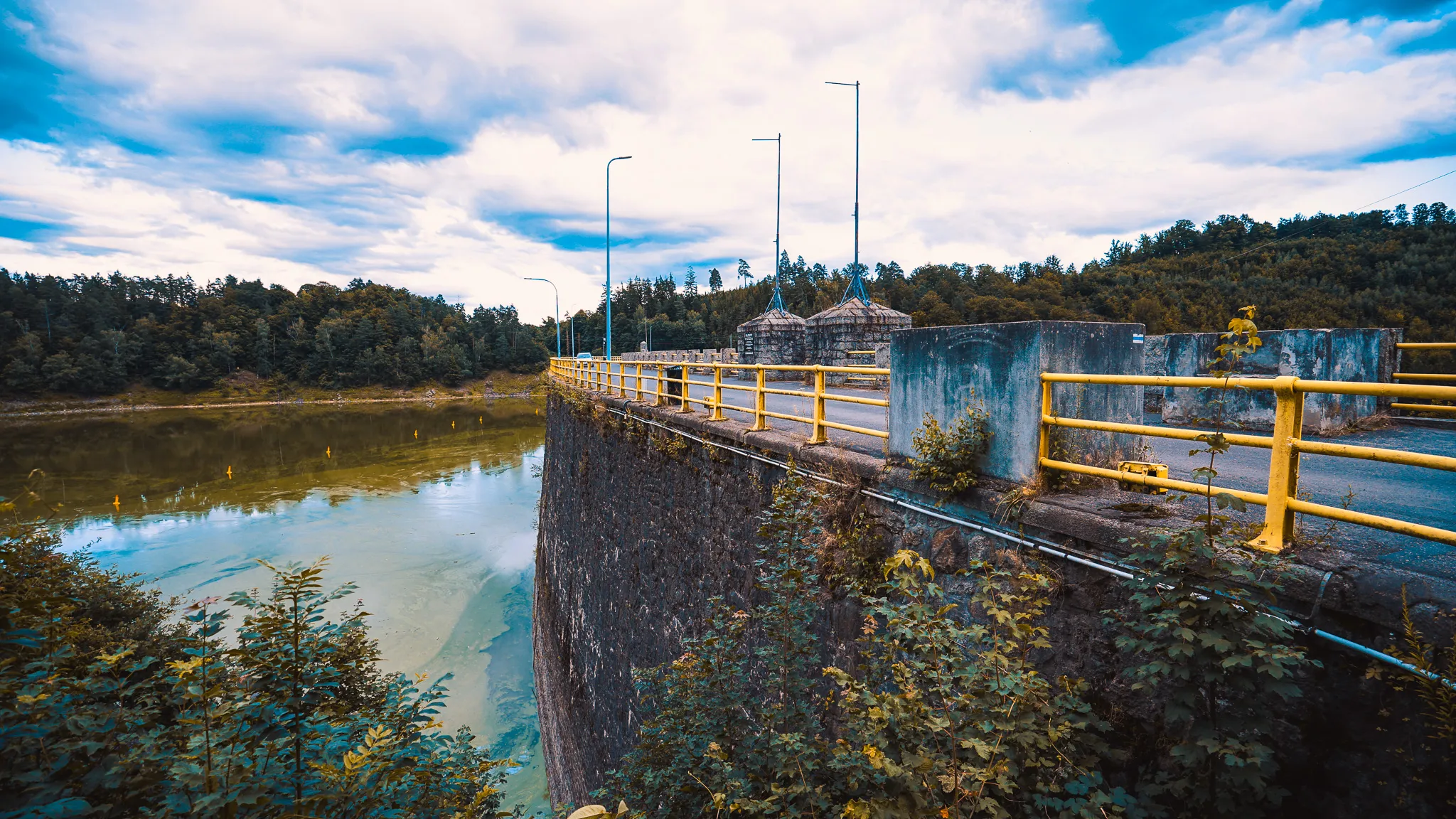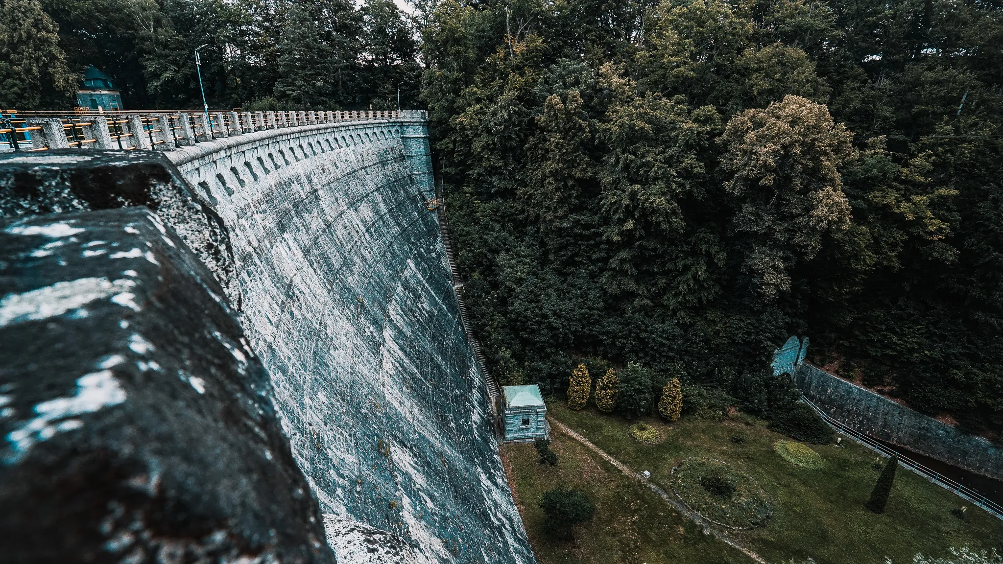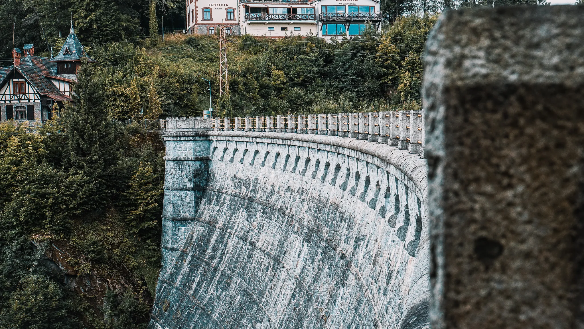 Jen pár set metrů dál na nás čeká monumentální Leśniańská přehrada, vybudovaná na řece Kwise v letech 1901–1905. Chrání okolí před povodněmi a patří k nejstarším přehradám Dolního Slezska. Díky ní vzniklo Leśniańské jezero, které se stalo i oblíbeným místem rekreace. Přehrada je impozantní – její kamenné zdi se zvedají do výšky 45 metrů a táhnou se v délce přes 130 metrů.