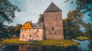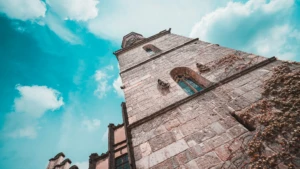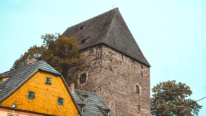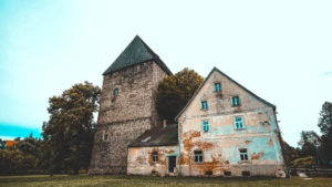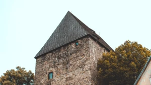 Pierwszy przystanek to Baszta Rycerska w Siedlęcinie, jedna z najlepiej zachowanych wież mieszkalnych w tej części Europy. Powstała w XIV wieku i do dziś imponuje swoją bryłą. Wnętrza kryją unikatowe polichromie przedstawiające legendy o rycerzu Lancelocie — to prawdziwy unikat, bo podobnych malowideł nie znajdziemy nigdzie indziej w Polsce.