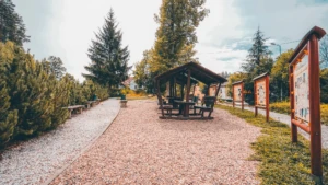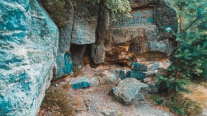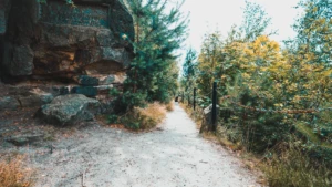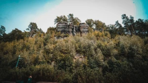 Następnie docieramy do miejsca zwanego Szwajcarią Lwówecką. To zespół skalnych formacji, które natura ukształtowała w fantazyjne kształty. Dawniej bywało to popularne miejsce spacerów kuracjuszy i turystów, a dziś nadal zachwyca swoim charakterem.