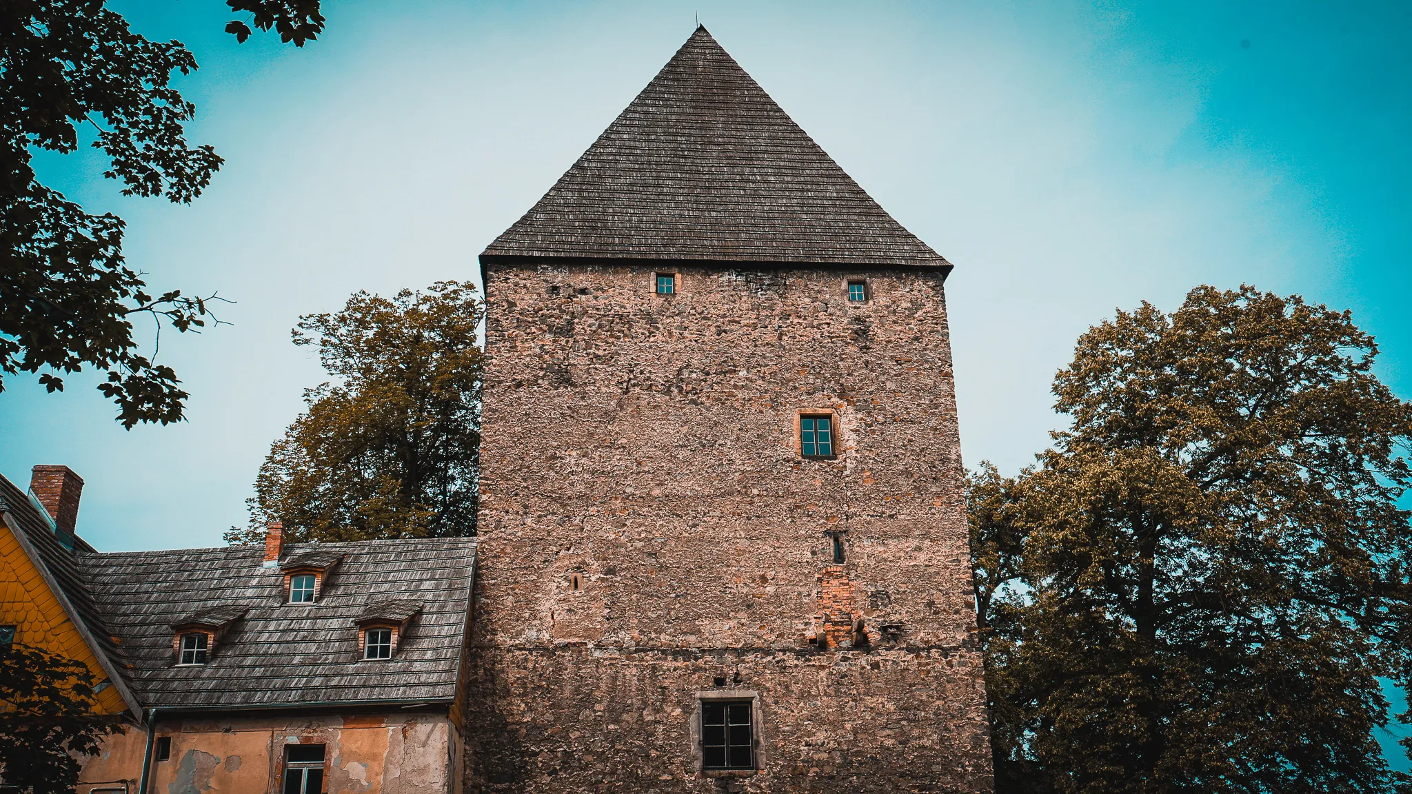 Pierwszy przystanek to Baszta Rycerska w Siedlęcinie, jedna z najlepiej zachowanych wież mieszkalnych w tej części Europy. Powstała w XIV wieku i do dziś imponuje swoją bryłą. Wnętrza kryją unikatowe polichromie przedstawiające legendy o rycerzu Lancelocie — to prawdziwy unikat, bo podobnych malowideł nie znajdziemy nigdzie indziej w Polsce.