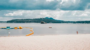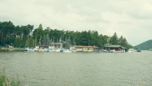 W dalszej części trasy docieramy nad Jezioro Mácha (Máchovo jezero), znane wcześniej jako Wielki Staw Doksy. To jeden z najpopularniejszych zbiorników wodnych w północnych Czechach, założony jeszcze w XIV wieku przez Karola IV. Dziś jezioro jest centrum rekreacji – z plażami, kąpieliskami i możliwością rejsów statkiem.