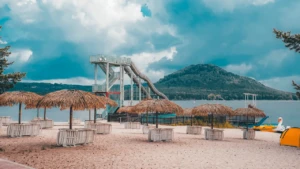 Pak přijíždíme k Máchovu jezeru (Máchovo jezero), známému dříve jako Velký rybník v Doksech. Vzniklo už ve 14. století z iniciativy Karla IV. a dnes je jedním z nejnavštěvovanějších rekreačních míst severních Čech – s plážemi, koupališti a možností lodních vyhlídek.