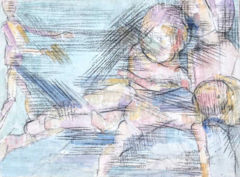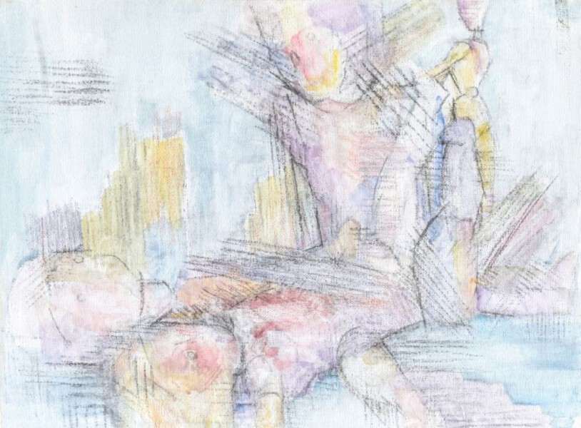Meine vollkommen eigenständige Technik, Zeichnungen und Collagen auf feinen Folien in mehreren Schichten eine plastische Wirkung zu verleihen, erscheint durch die Transparenz des Materials, die schillernde Farbigkeit in Pastelltönen äußerst sensibel. Dagegen stehen wuchtige schwarze Zeichnungen voller Abgründigkeit. Es geht immer um Menschen.