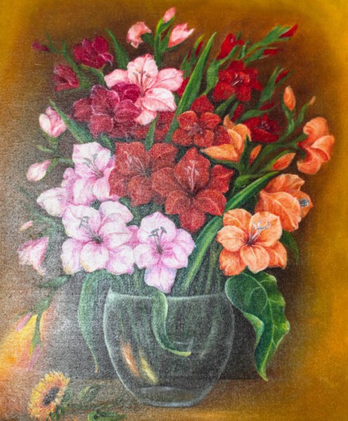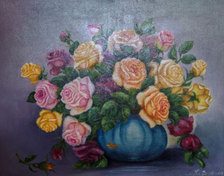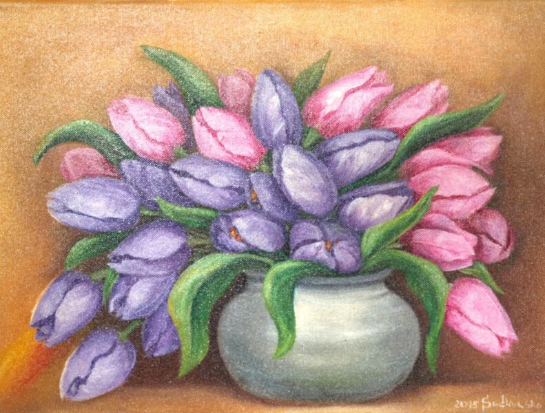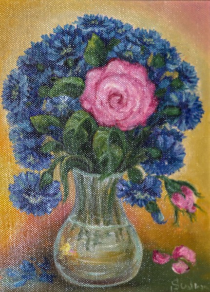Als ich im Ruhestand war, begann ich voll und ganz meiner Leidenschaft nachzugehen. Vorbereitung der Leinwand, Grundierung ist der erste Arbeitsschritt voller Emotionen. Da wirbeln Gedanken und Fragen herum, wie man das reale Bild auf die Leinwand überträgt ? Während der Arbeit lassen die Emotionen nach, es herrscht Ruhe und nur das Malen zählt. Am Ende kehren sie jedoch zurück und man stellt sich die Frage, ob die beabsichtigte Wirkung erreicht wurde?Mich inspiriert die Natur, insbesondere Blumen, ihre Schönheit, der Reichtum an Farben und Formen, der mich in fröhliche Stimmung versetzt, meine Fantasie anregt und sogar einschüchtern.Daführ hat die Sakrale Malerei hat mein Herz gestohlen. Die Inspiration, ein Bild zu malen ist die Geschichte des Heiligen, man muss sie kennen lernen. Sie ist äußerst interessant, regt die Fantasie an und führt uns in eine ganz andere Dimension und einen anderen Bereich unseres spirituellen Lebens.