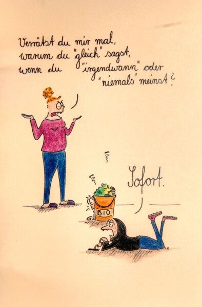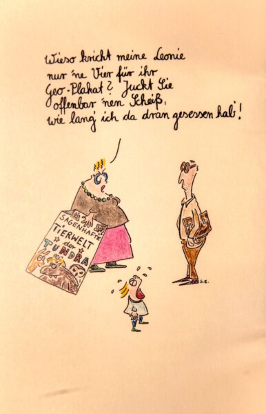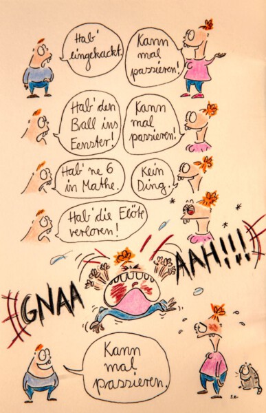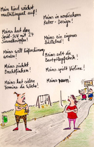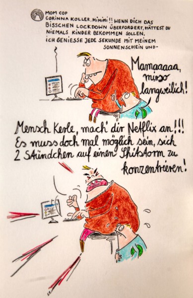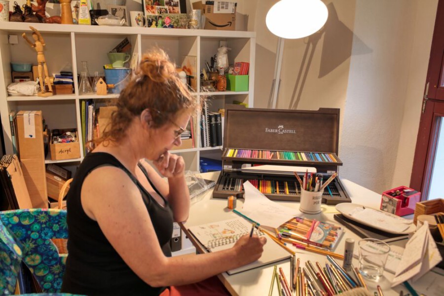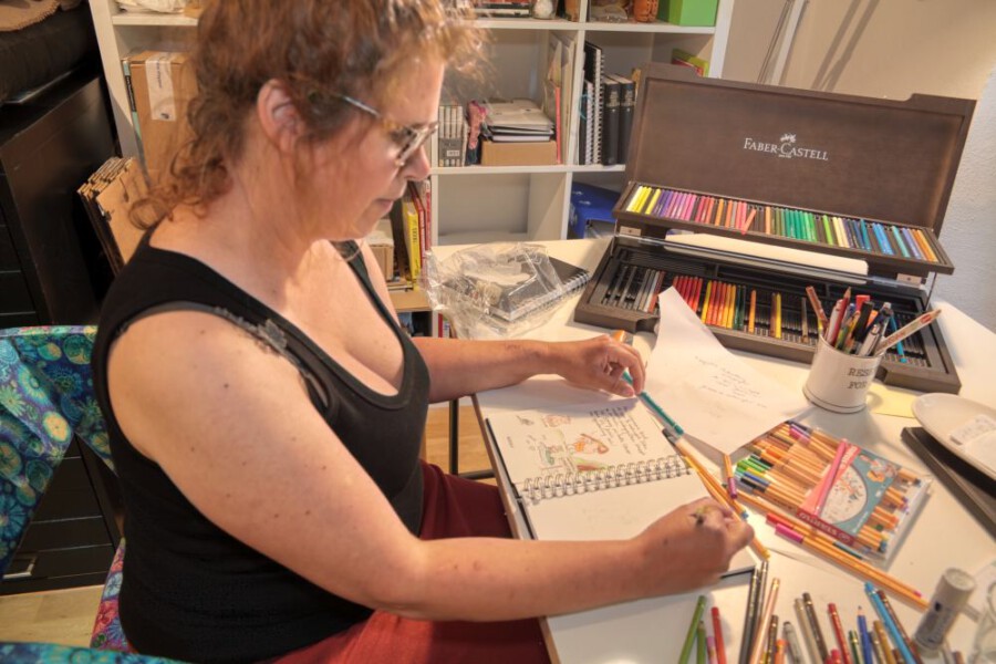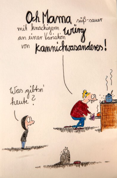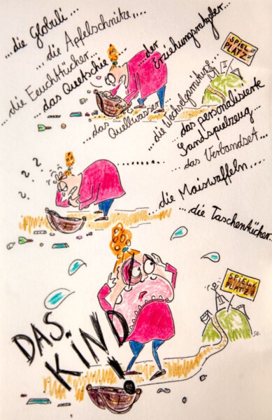 Als freie Cartoonistin und Illustratorin fügte ich die Lieblingsanteile aller jemals ausprobierten Berufe zusammen: Gesehenes, Gehörtes und Erlebtes habe ich mit Tusche und Buntstift zu Papier gebracht, wobei mein Lieblingsthema das Leben als Frau und Mutter bleibt.