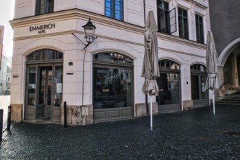 Nach der Tour gehen wir in das Café im Hotel "Emmerich", um uns auszuruhen. Der Name ist nicht zufällig gewählt. Georg Emmerich war Ende des 15. Jahrhunderts sechsmal zum Bürgermeister gewählt und ließ in der Stadt eine Kopie des Heiligen Grabes errichten.