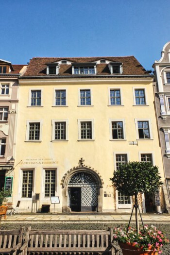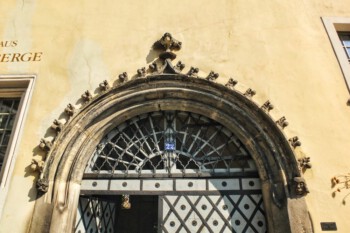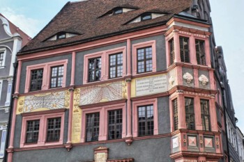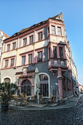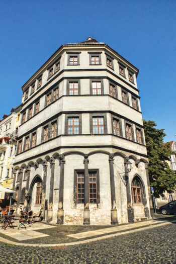Wenn wir die Straße hinaufgehen, kommen wir zu einem der schönsten Renaissancegebäude in Görlitz, dem Bibelhaus. Der Ursprung des Namens lässt sich leicht durch die Reliefs zwischen den Fenstern des ersten und zweiten Stocks erklären. Sie stellen Szenen aus dem Alten und Neuen Testament dar. Diese Gemälde entstanden in den 1670er Jahren, nachdem das Gebäude von einem Weimarer Kaufmann gekauft worden war. Solche Stadthäuser sind im gesamten deutschsprachigen Raum kaum zu finden. Darüber hinaus ist die Verwendung von zwei Säulen auf beiden Seiten des Eingangs sehr selten. Sie haben keinen strukturellen Nutzen, sondern sind lediglich dekorativ. Heute beherbergt das Gebäude die Abteilungen des Rathauses.