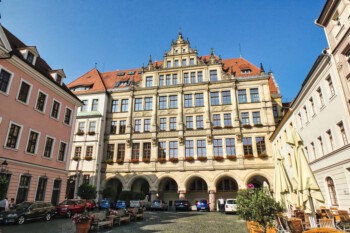 Po tej stronie rynku widzimy na środku barokowy gmach dzisiejszego hotelu „Börse”. Ta nazwa oznacza giełdę, bo od początku swojego powstania istniał tu dom komisyjny, giełda czy nowy dom targowy. Zachował się charakterystyczny portal z figurami szczytowymi i kartuszem.
