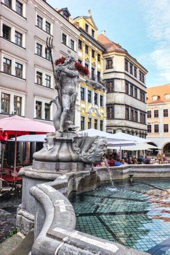 Auf dem Platz ist auch ein Brunnen zu sehen. Es handelt sich um einen barocken Neptunbrunnen aus dem Jahr 1756. Dahinter besteht die gesamte Westfassade des Platzes aus den Gebäuden des Rathauses. Der neueste Teil ist das so genannte Neue Rathaus. Es wurde nach dem Wiederaufbau im Jahr 1900 erbaut, als die älteren Mietshäuser in ein Gebäude umgewandelt wurden. Dieses Gebäude ist der Neorenaissance am nächsten. Die Fassade zeigt die sechs Wappen der Städte, die dem Sechsstädtebund angehörten. Dabei handelte es sich um einen Zusammenschluss der sechs Oberlausitzer Städte gegen Raubritter, die die Sicherheit der Bürger und der durchreisenden Kaufleute bedrohten.